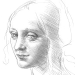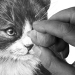 - Sketch a cat's face within a grid and then use mostly curved hatching lines to shade her fur and face